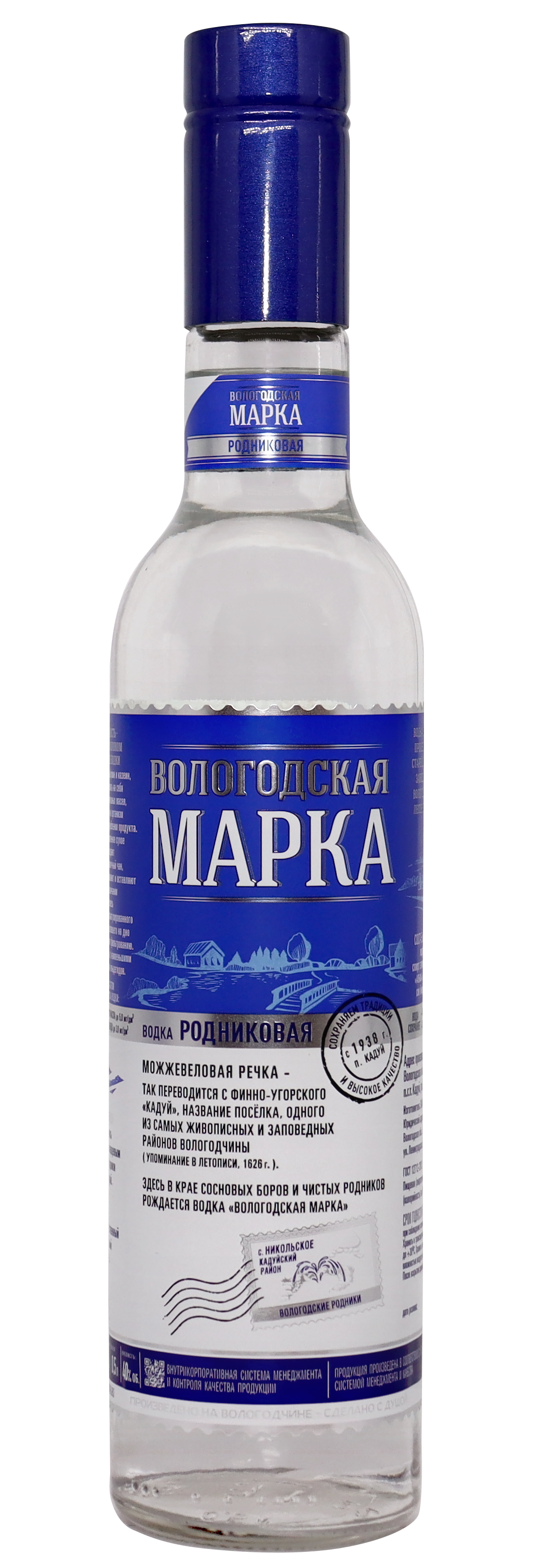 Богатство щедрой Российской земли, ее голубые родники, зеленые березовые рощи, колосистые поля пшеницы - все это соединено в водке «Вологодская марка», рожденной в одном из самых живописных и заповедных районов Вологодчины.